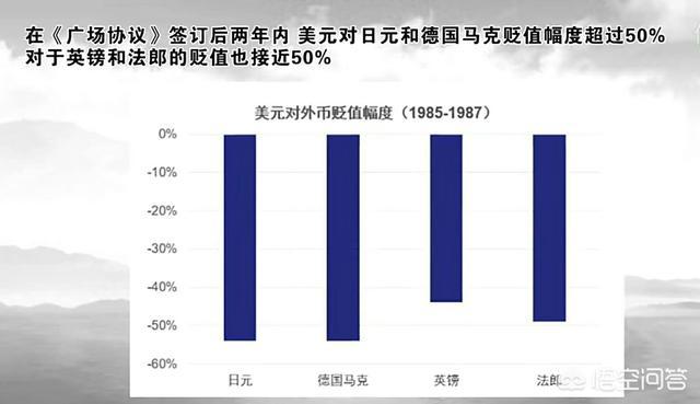 通过《广场协议》,1985年-1987年日元对美元升值超过50%,回到了1980年日元兑美元的状况。