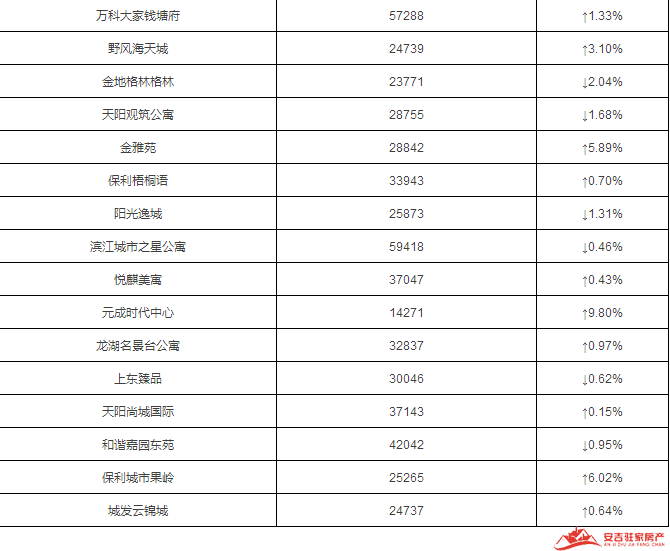 上城部分热门小区二手房均价
